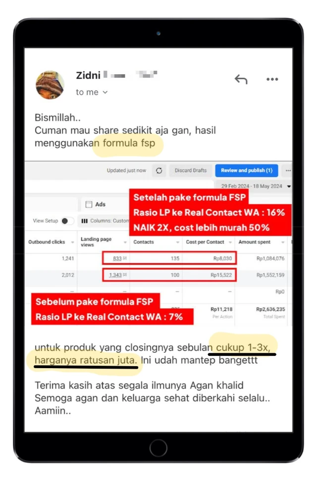 ❌ Tapi leads sepi (SP-ATC dibawah 10%)...